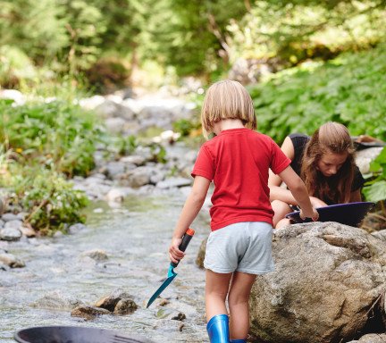 Am Goldwaschplatz „Alte Pöck“ in Böckstein können Schatzsucher*innen mit Geduld, Geschick und etwas Glück echtes Tauerngold aus dem Wasser schürfen. Ein Erlebnis, das nicht nur Kinder, sondern auch Erwachsene begeistert.