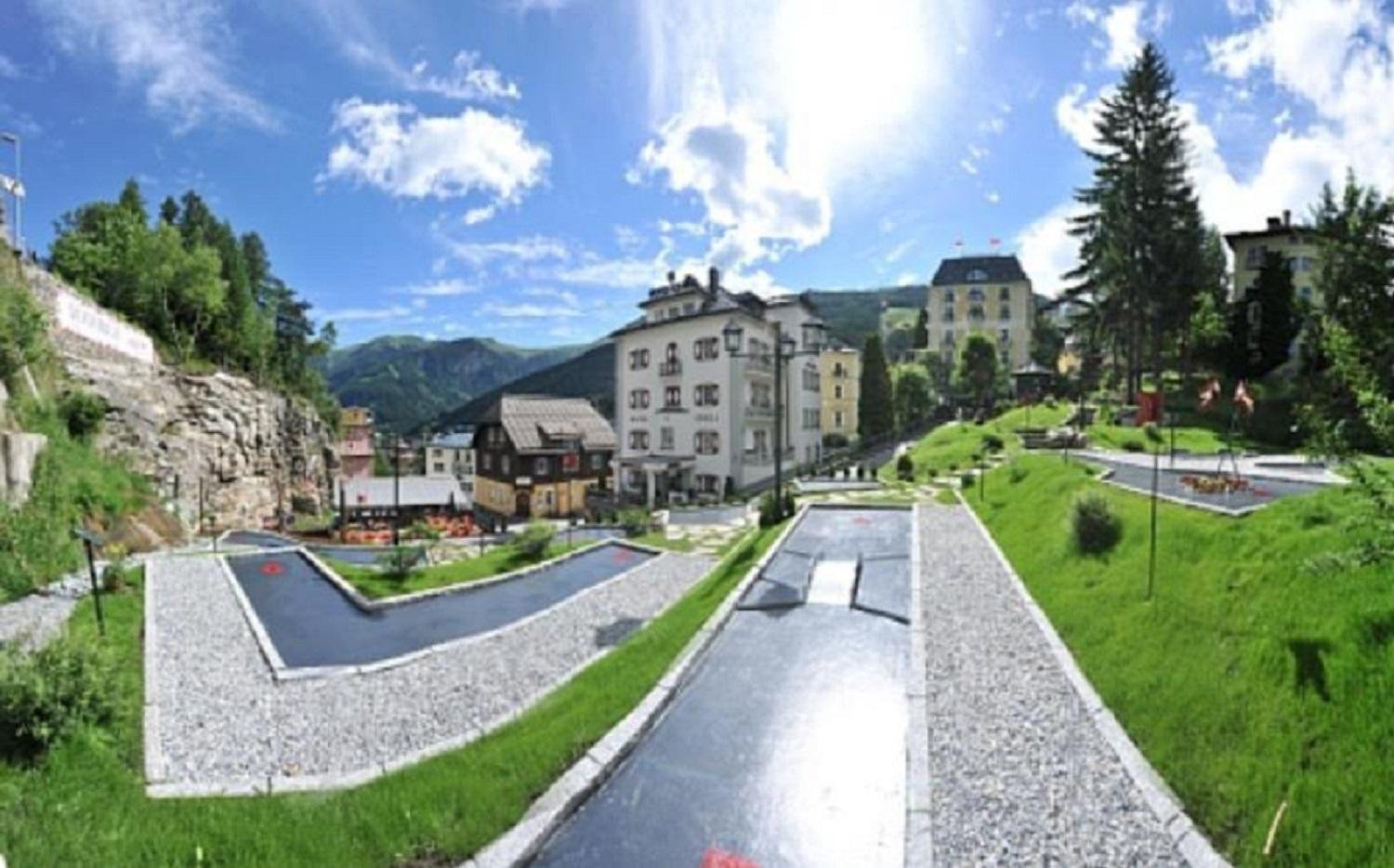 Mitten im Ortszentrum, eingebettet zwischen historischen Fassaden und imposanten Felswänden, liegt die kompakte Minigolfanlage von Bad Gastein. Auf 12 gepflegten Bahnen erleben Gäste ein Spiel voller Spaß und kleiner Erfolgsmomente. Der Platz ist nur wenige Gehminuten vom Bahnhof entfernt – ideal für einen spontanen Stopp oder eine gemütliche Partie nach einem Spaziergang durch den Ort.