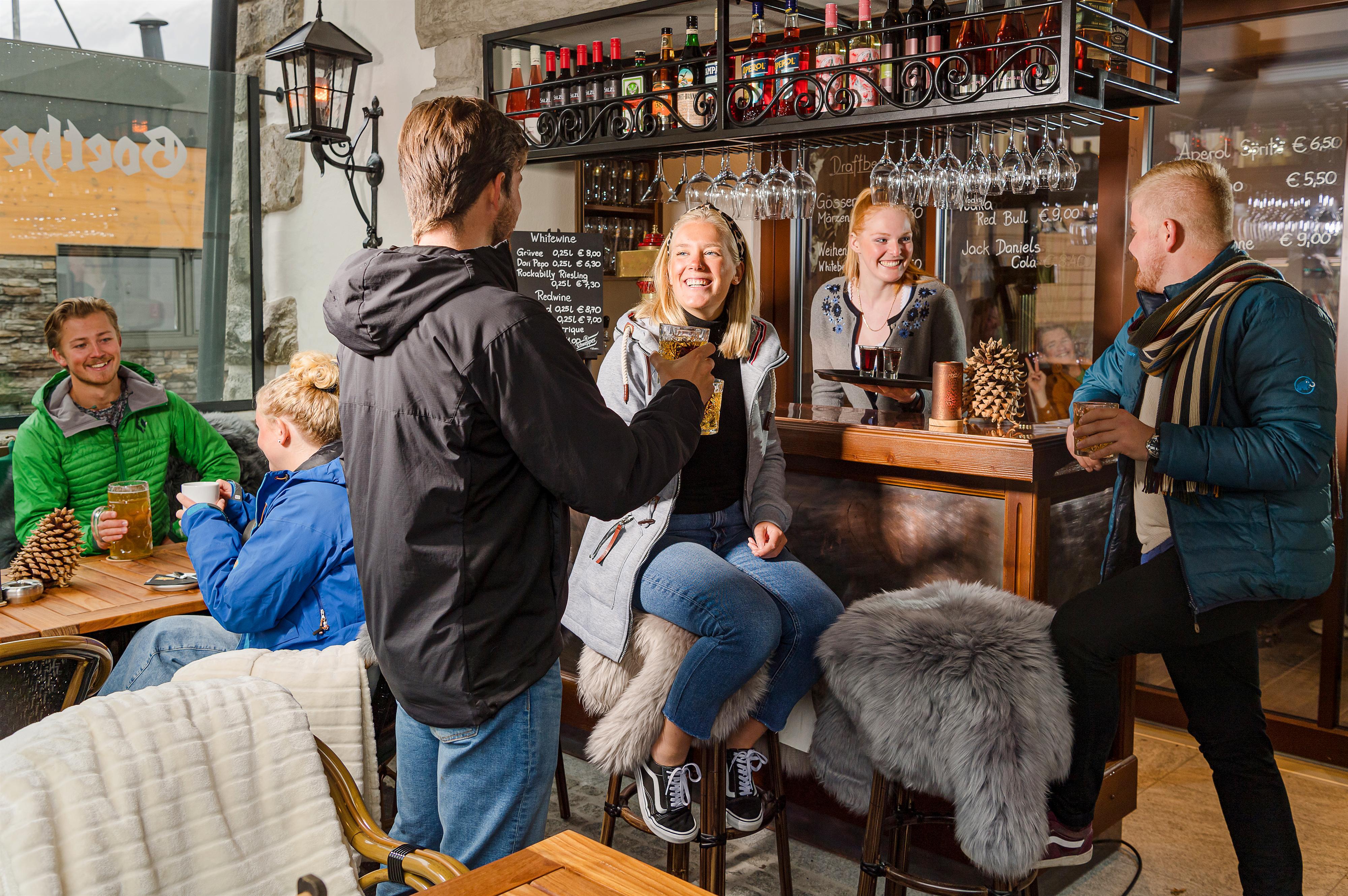 Ab 14.30 Uhr erwartet die Gäste eine entspannte Après-Ski-Stimmung mit kleinen Snacks und ausgewählten Getränkespecials.