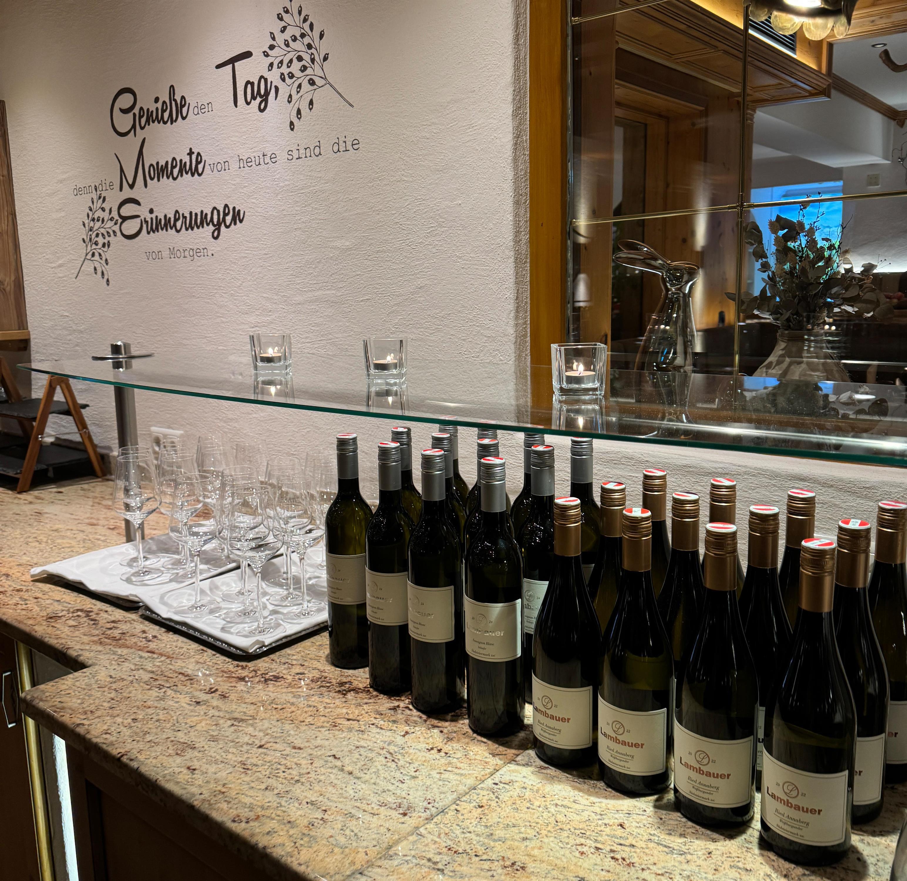 Beim Flying Wine & Dine Buffet im Aktivhotel Gasteiner Einkehr steht Austausch, Unterhaltung und natürlich der Genuss von herrlichen österreichischen Weinen im Zentrum des Abends.