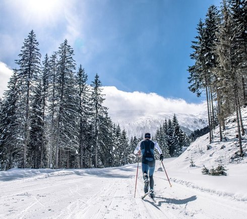 Klassisch und Skating (8 km), 1.200 - 1.280 m Seehöhe, Schwierigkeitsgrad: mittelschwer., Einstieg: Skizentrum Angertal. Diese landschaftlich reizvolle Wanderloipe führt entlang des Angerbaches zum Haidegg-Gut, weiter über den Sameranger und Bürgerwaldweg zum Talschluss.