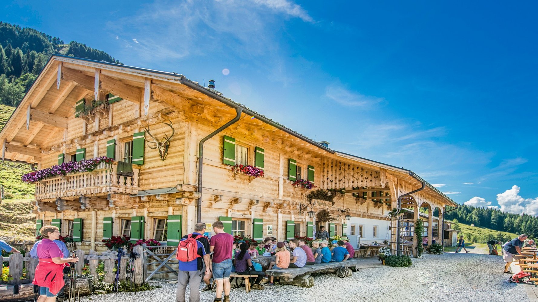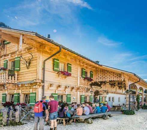 Nach der Abzweigung zur Amoseralm hält man sich rechts und passiert die Huberalm. Eine letzte Kehre führt zum höchsten Punkt der Tour – der „Drei Waller Kapelle“. Ein Stopp lohnt sich, um die besondere Atmosphäre dieses Kraftplatzes zu genießen. Anschließend geht es bergab zur Kögerlalm.