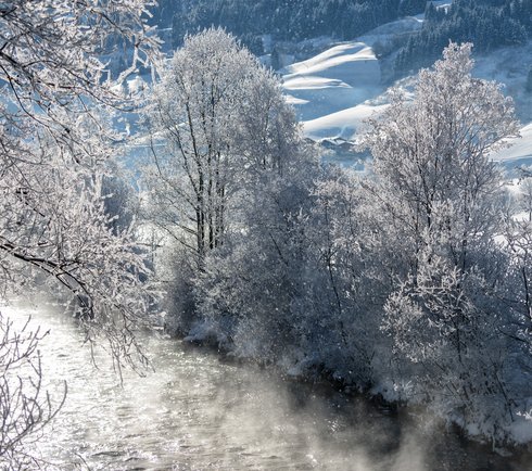 Vom Ortszentrum aus spaziert man zur Achenpromenade und begibt sich auf eine wunderschöne Wanderung Richtung Bahnhof Bad Hofgastein. Der winterliche Weg entlang des auflebenden Wassers vorbei an schneeglitzernden Feldern ist perfekt, um die Natur zu genießen und ganz im Hier und Jetzt zu sein. Am Ende der Promenade geht es weiter durch den Ortsteil Wieden. Traditionelle Bauernhöfe und lieblich gestaltete Häuser geben den dörflichen Charakter lebendig wieder.