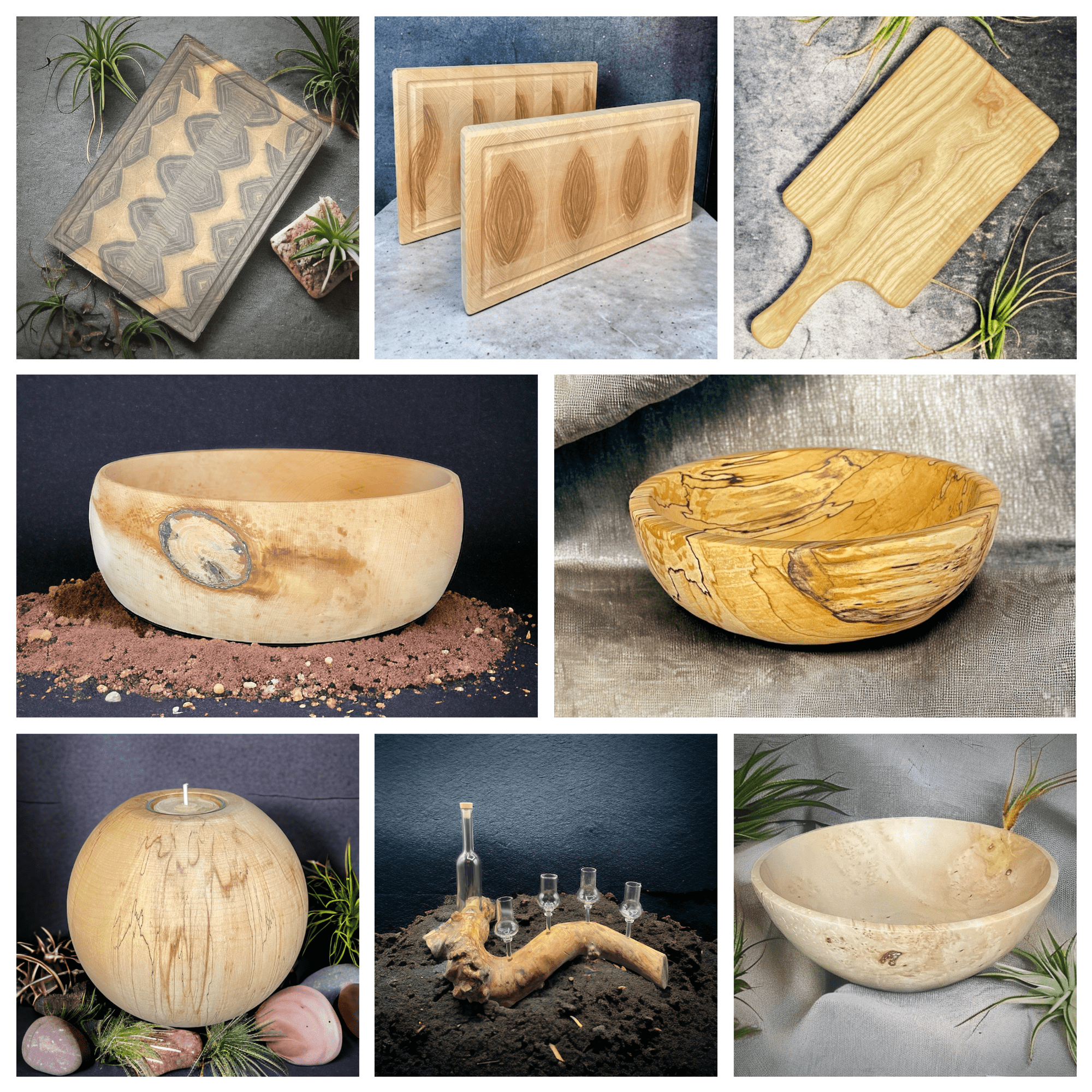 Bei mir in der Drechslerei entstehen einzigartige Schüsseln, Vasen, Teelichter und Kugelschreiber. Auch Jausenbretter, Vorlagebretter und Zirbenbrotkisten und vieles mehr wird von mir handgefertigt, wobei ich mit Vorliebe heimisches Holz verwende.
